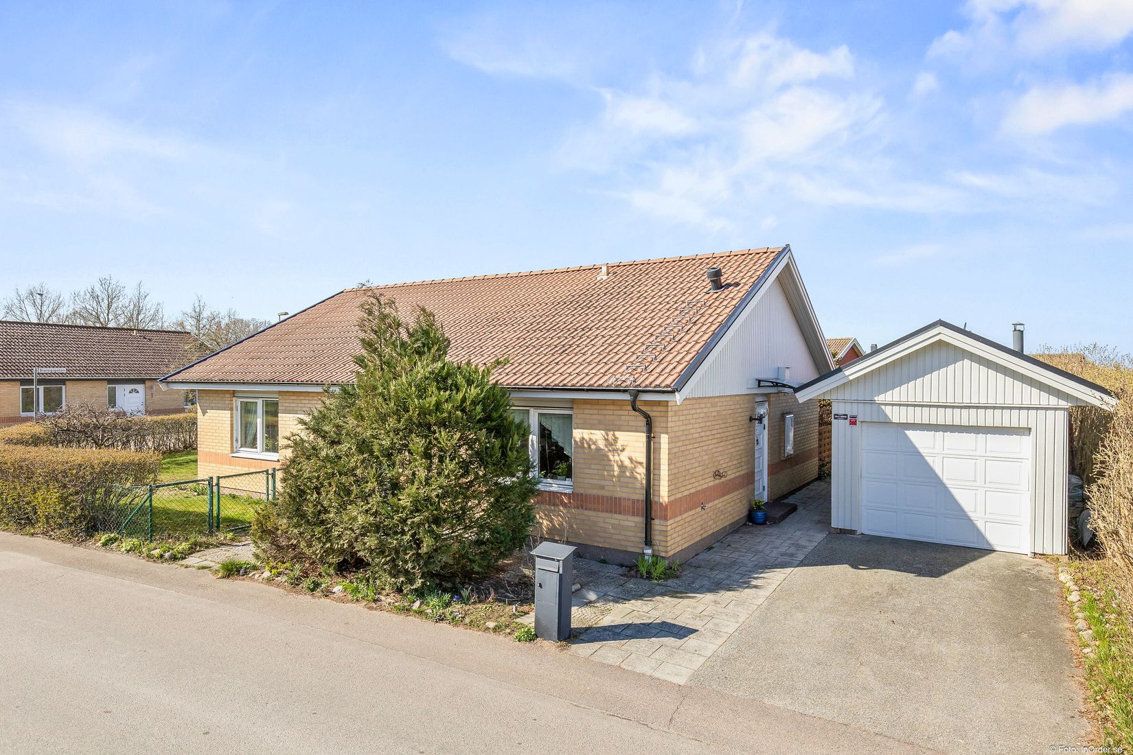 Välkommen till denna charmiga enplansvilla belägen på en attraktiv hörntomt i omtyckta Grimstofta. Här bor du i ett lugnt och naturnära område med närhet till Stenänga, som bjuder på vackra promenadstråk året om. Bostaden rymmer tre sovrum, kök, vardagsrum, två badrum samt ett praktiskt grovkök. Utomhus finns en stensatt uteplats och en gräsyta som passar perfekt för lek, umgänge och avkoppling under årets varmare månader. Den plana och lättskötta tomten gör det enkelt att njuta av livet utan omfattande trädgårdsarbete. På fastigheten finns även uppfart, garage, bastu samt förråd som erbjuder gott om förvaringsmöjligheter.