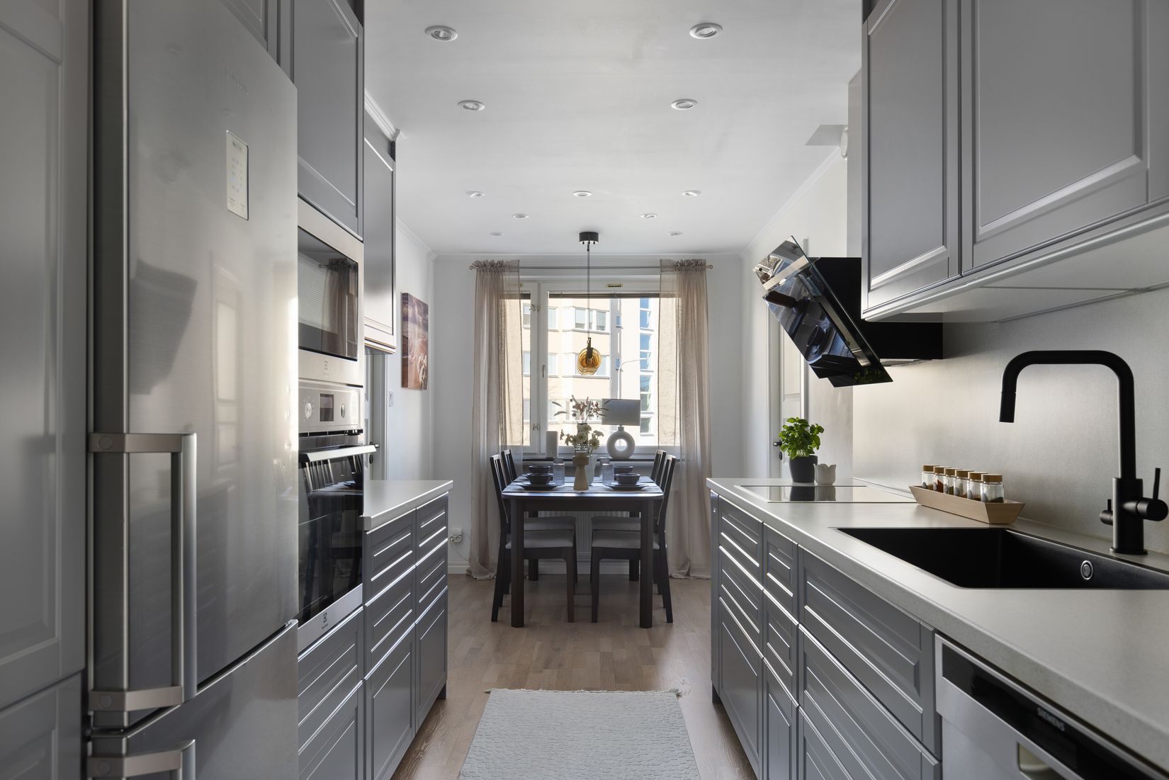 Lägenheten är välplanerad och idealisk för familjer som behöver minst tre sovrum. Vardagsrummet skulle kunna delas av med en sovalkov för att skapa en extra sovplats. Från vardagsrummet nås den inglasade balkongen som har gott om utrymme för både sittgrupp och blommor, vilket gör den till en idealisk plats för avkoppling och umgänge. Med utsikt över grönska och lugna omgivningar blir denna balkong en perfekt förlängning av vardagsrummet och en självklar favoritplats i hemmet. Här kan du njuta av morgonkaffet i solen, odla dina favoritväxter eller bara koppla av med en bok i handen. Lägenheten har rikligt med ljusinsläpp, vilket bidrar till en härlig och inbjudande atmosfär. Köket är en fröjd för den matintresserade - en plats där varje detalj är noga genomtänkt och materialvalen noggrant utvalda för att skapa en harmonisk och modern atmosfär. Huset erbjuder också bekvämligheter som en praktisk tvättstuga och till lägenheten hör ett förråd för extra förvaring.