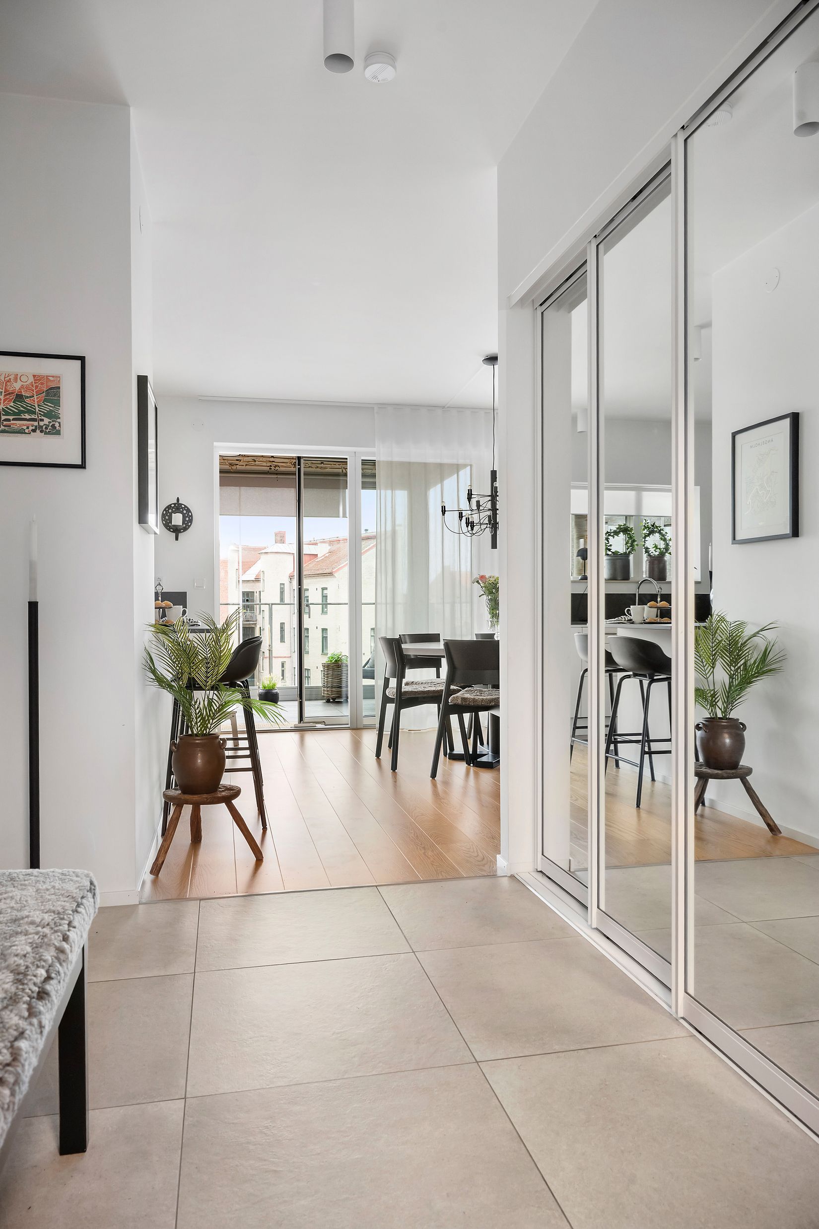 Bostaden är genomtänkt planerad med öppen planlösning mellan kök och sällskapsrum, vilket skapar generösa sociala ytor. Från vardagsrummet nås en stor inglasad balkong mot den lugna innergården, som förlänger säsongen och ger extra utrymme för avkoppling.