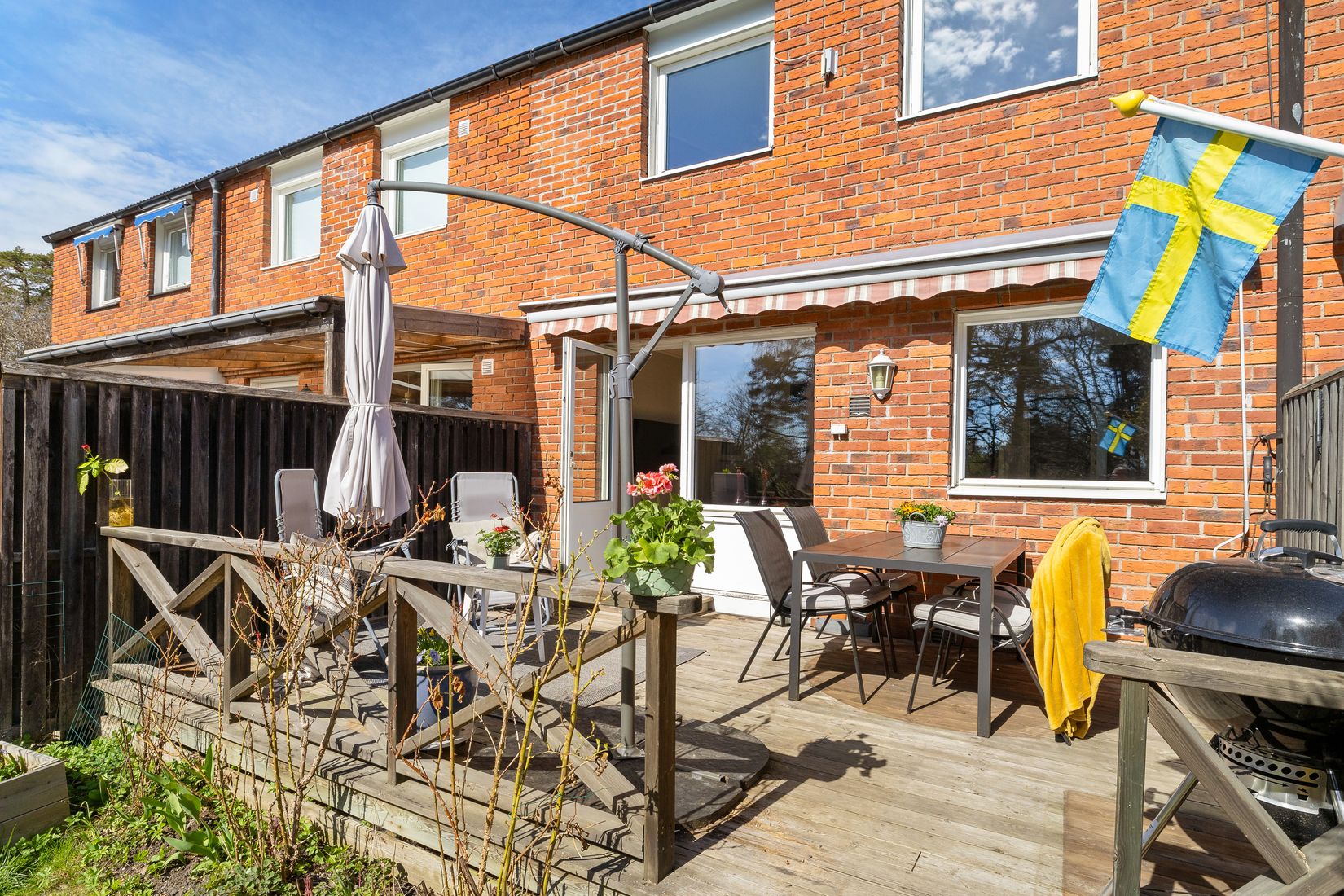 Trivsamt radhus i ett eftertraktat och rofyllt villaområde i centralt läge. Här bor du med närhet till både hav, bad och vackra promenadstråk - en perfekt kombination av bekvämlighet och livskvalitet. Bostaden är nyligen renoverad med nytt kök, vitvaror, modernt duschrum, uppfräschade ytskikt, nya golv samt renoverat tak. Planlösningen erbjuder idag tre bra sovrum med möjlighet till fyra, vilket ger goda möjligheter att anpassa hemmet efter familjens behov. Den uppvuxna och insynsskyddade trädgården på 319 kvm bjuder på en härlig och solig plats för både avkoppling och lek. En trivsam och privat oas för såväl stilla stunder som sociala tillfällen. Här finns även en generös trädäckad uteplats i söderläge som snabbt blir en favoritplats för umgänge, grillkvällar och långa sommarkvällar. På tomten finns ett förråd och på entrésidan en carport med förvaringsmöjligheter i direkt anslutning till entrén - en vardagslyx som förenklar livet.