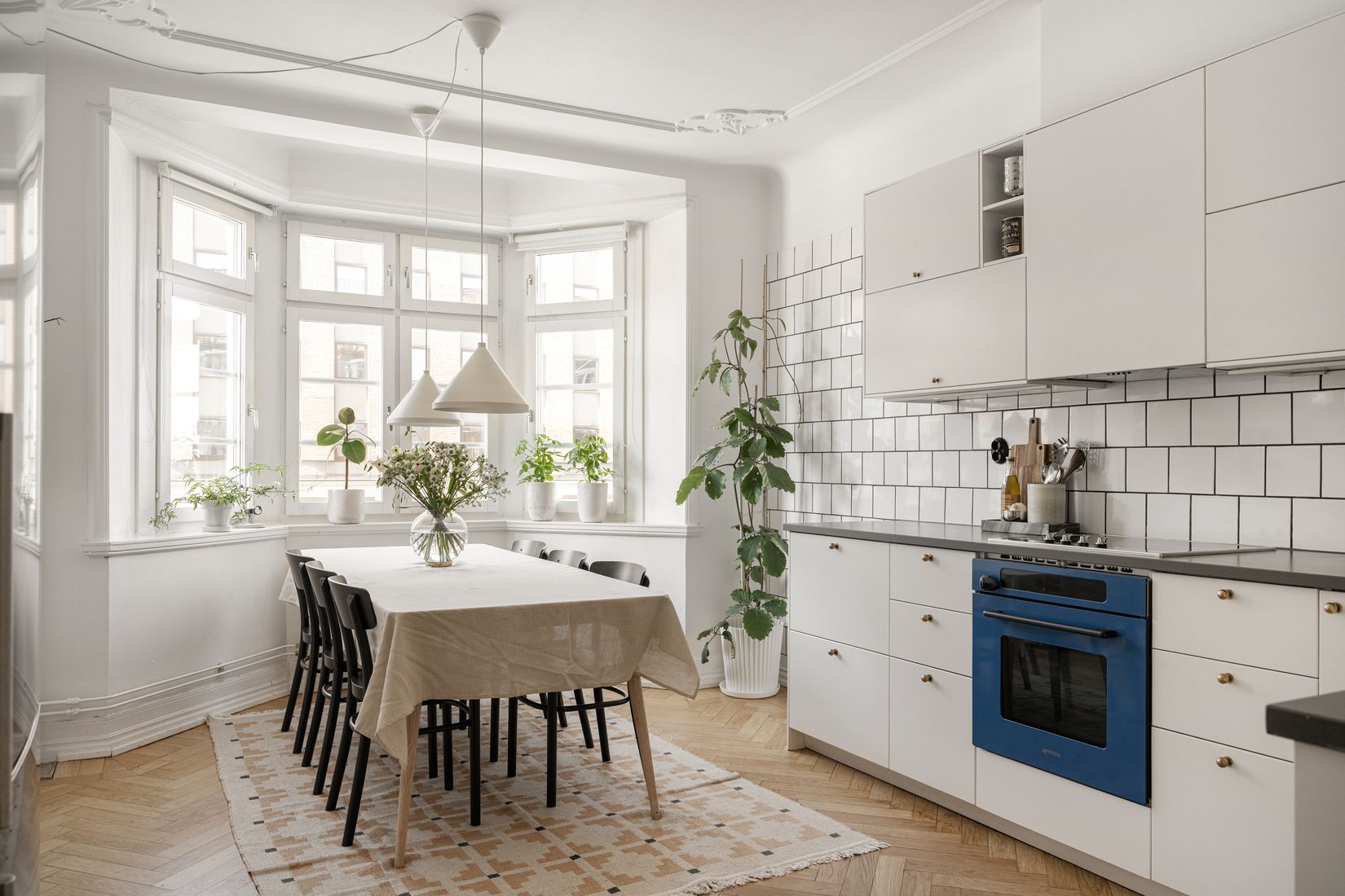Bostaden erbjuder ett fantastiskt ljusflöde tack vare stora fönsterpartier i två väderstreck och en välplanerad, genomgående planlösning. Vackra originaldetaljer såsom fiskbensparkett, stuckatur, lamprosetter och spegeldörrar skapar en elegant och tidlös helhet.