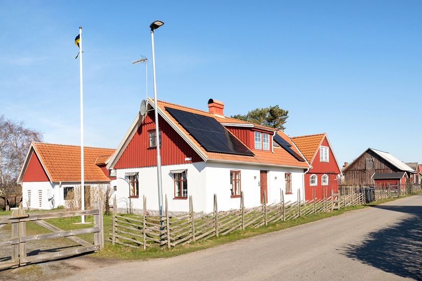 Med fri utsikt över öppna fält och det skånska typiska landskapet, ja så beskriver man bäst läget på denna klassiska gårdsbyggnad i U-form. Här möts du av en harmonisk kombination av delvis vitputsad fasad, rödmålad träpanel och snygga färgval. Att gårdsplanen är singlad förstärker intrycket och visst är bara grejen med en innergård något visst?!