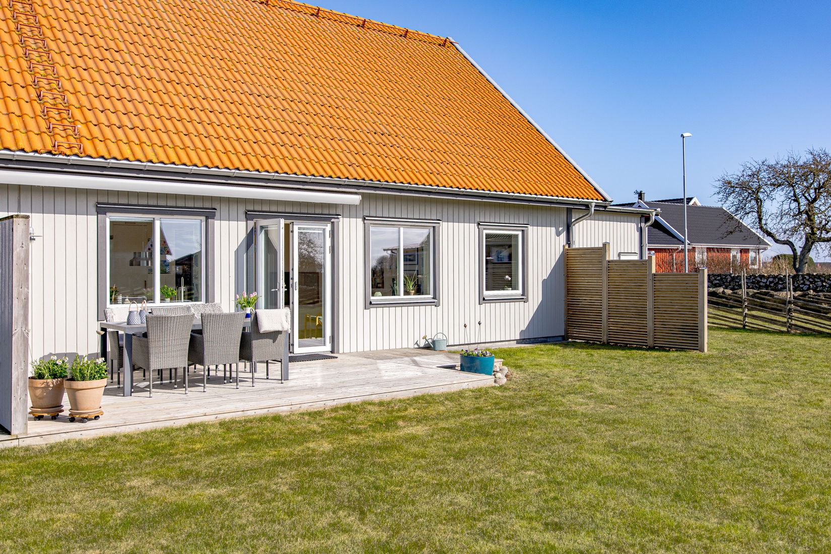 Bostaden har ett av områdets bästa lägen med en härlig altan i västerläge där du kan njuta av solens strålar långt in på kvällen. Från altanen ser du fyren Morups Tånge och en skymt av havet.