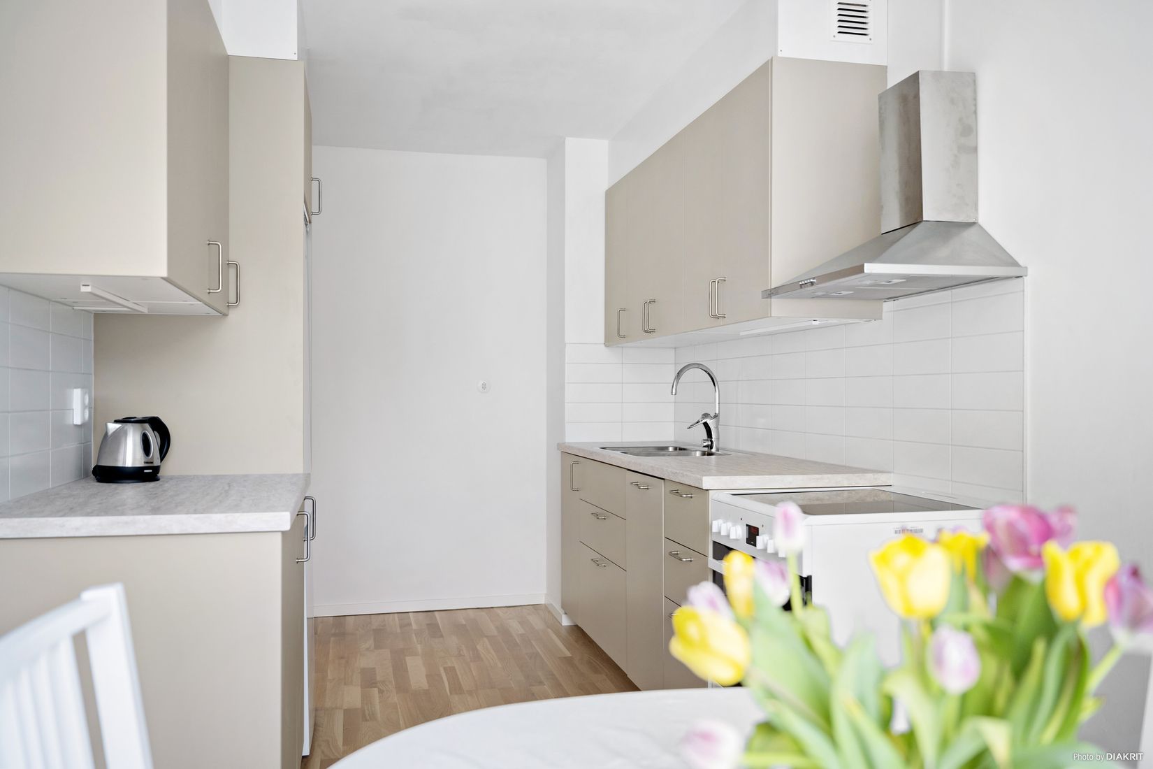 Planlösningen fördelar sig fint över en rymlig och välkomnande hall med goda avhängnings ytor och praktiska garderober. Ett stort och luftigt allrum med härligt ljusinsläpp från de stora fönsterpartierna som inbjuder till att enkelt kunna bjuda hem folk utan att det känns trångt. Här får man plats med både säng och soffgrupp. Lägenheten erbjuder vidare ett vackert Ikea kök från 2023 med rymlig matplats som likväl kan med enkla medel göras om till ett sep sovrum om så önskas. Sist men inte minst hittar vi ett helkaklat och fräscht badrum som renoverades 2019 i samband med föreningens stambyte.