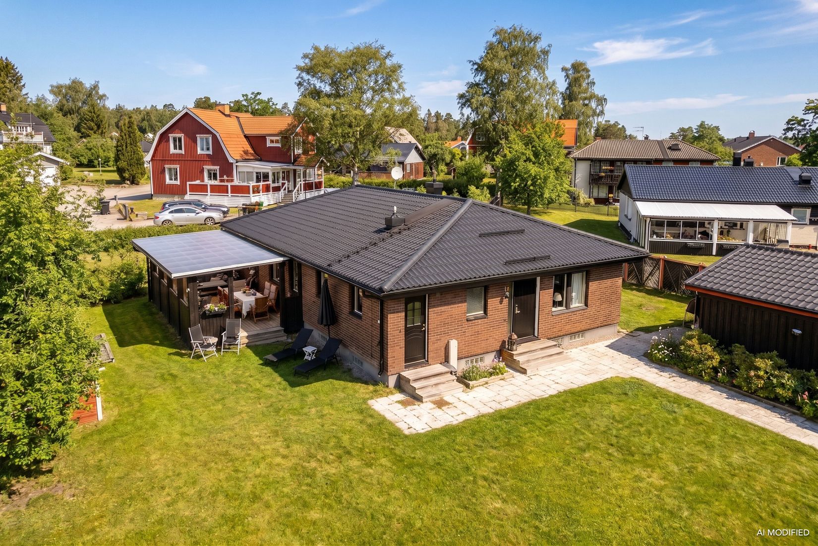 Den lättskötta trädgårdstomten bjuder på stora gräsytor som passar perfekt för lek, avkoppling och odling. På tomten återfinns ett rymligt och avkopplande spabad, samt ett dubbelgarage med goda förvaringsmöjligheter.