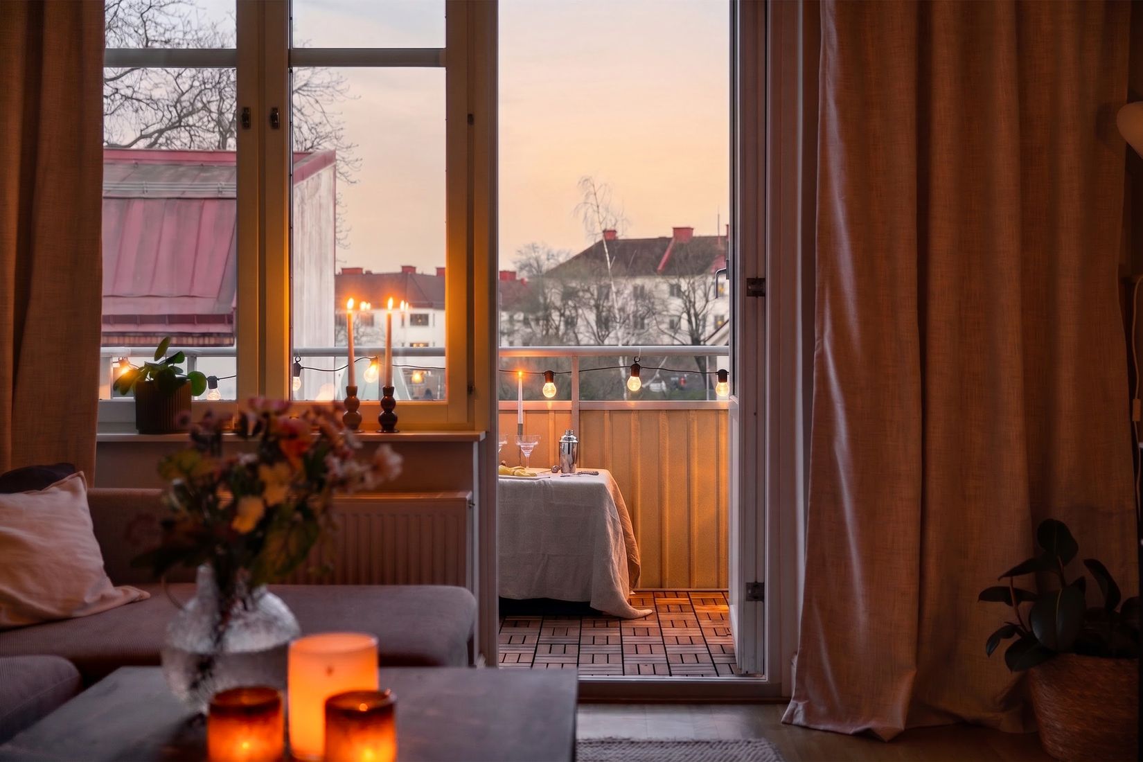 Planlösningen är genomtänkt och funktionell med väl avvägda ytor som skapar ett naturligt flöde mellan rummen. Köket ligger i delvis öppen planlösning mot vardagsrummet och bjuder in till sociala stunder utan att tumma på hemmets lugna uttryck. Från vardagsrummet nås balkongen i söderläge, vänd mot föreningens grönskande innergård – en skyddad plats med sol större delen av dagen.