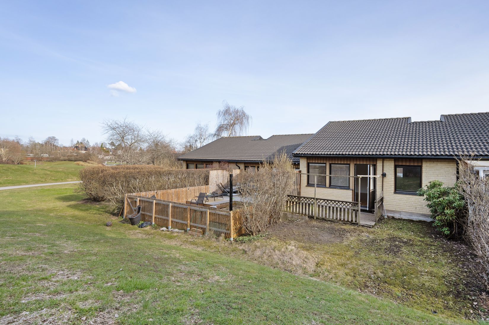 Här finner ni känslan av villaboende men istället för en stor trädgård som ställer krav, har ni två härliga uteplatser samt en mysig gräsmatta att bara ta det lugnt på.
