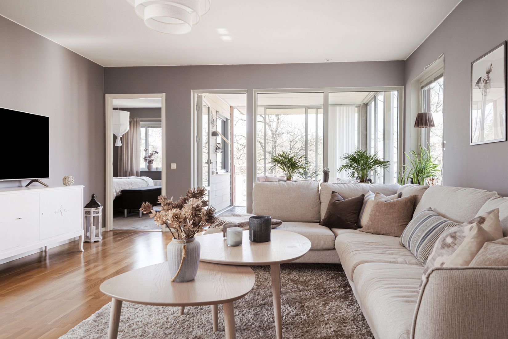 Köket och vardagsrummet bjuder in till sociala stunder, och härifrån nås även bostadens ena balkong. Totalt finns två balkonger, varav den ena är delvis inglasad – en perfekt plats att njuta av utsikten och koppla av året runt, oavsett väder. Läget är högt och ljust med en rogivande vy som förstärker känslan av lugn och frihet.