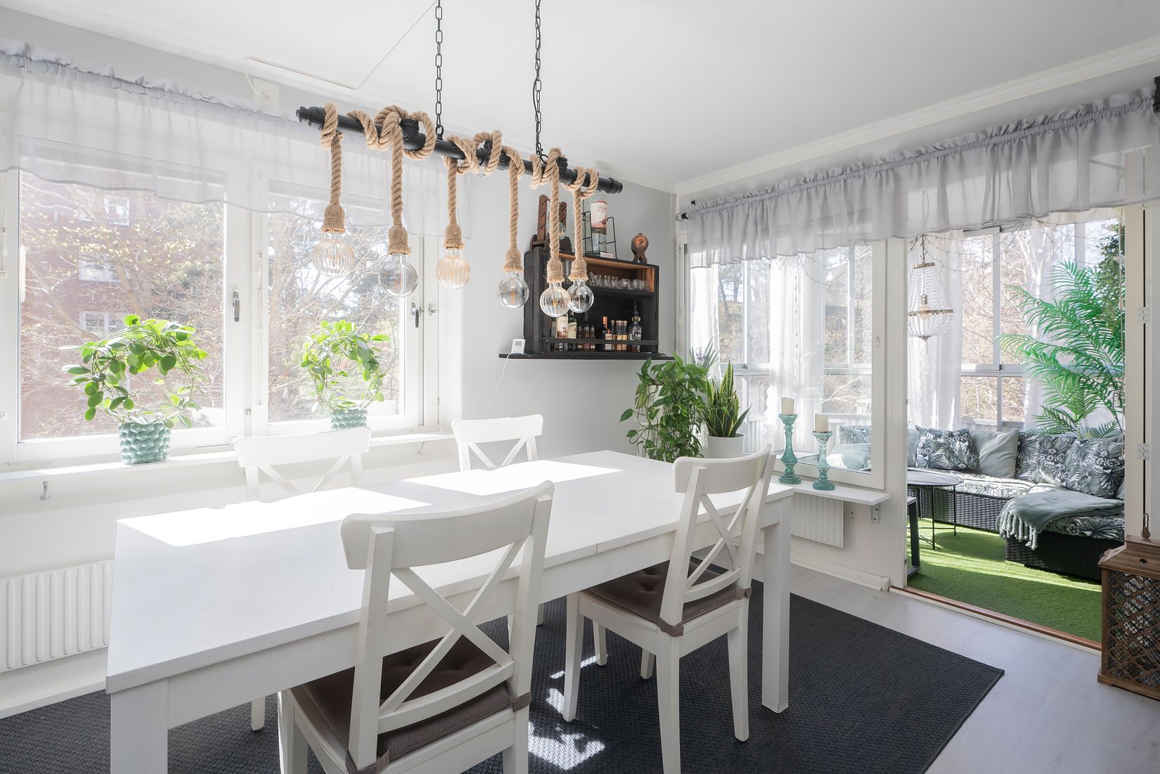 Planlösningen är både funktionell och social med ett fint kök med tillhörande matplats, tre rymliga sovrum, ett helkaklat badrum samt goda förvaringsmöjligheter i form av stor klädkammare. Därtill finns gott om förvaring redan i hallen genom flera garderober, vilket skapar både praktiska avlastningsytor och en välorganiserad entré.