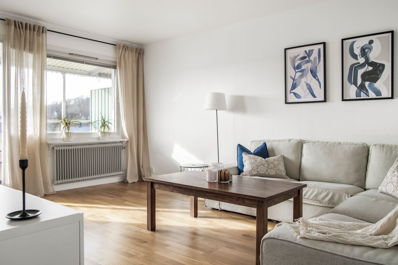 Ni finner även genomgående parkettgolv, rymligt ljust kök med ny kyl/frys 2023, halvkaklat fräscht badrum som uppdaterades 2022 med inredning och tvättmaskin. Det stora vardagsrummet har utgång till bostadens pärla, balkongen. Balkongen ligger insynsskyddad i perfekt solläge och här kan man njuta av eftermiddagssolen och solnedgångar.