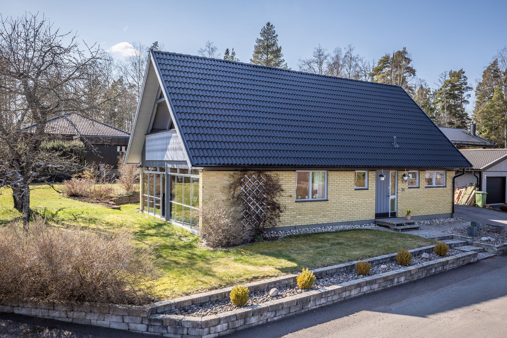 I huset finns även en praktisk tvättstuga samt flera flexibla utrymmen som kan användas till förvaring eller anpassas efter behov. Friliggande garage ger smidig hantering av både bil och extra förvaring.