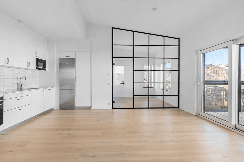 Varmt välkomna till denna stilsäkra bostad högst upp i huset med inglasad balkong. Ta hissen och kliv in via säkerhetsdörren och slås av den tilltagna takhöjden (3,5 m vid högsta punkt) som bidrar till den ljusa känslan. Till en början ligger klinker som sedan övergår till ek-parkett. Genomgående ljusa väggar. Kök från välrenommerad Ballingslöv med b.la integrerad diskmaskin. Vardagsrummet ligger i öppen och social planlösning mot köket. Via skjutdörrspartierna i glas når ni den inglasade och möblerbara balkongen. Njut av utsikten i goda vänners lag. Rummet har delats av med en snygg glasvägg i industriell stil för att skapa ett sovrum. Från sovrummet når ni det helkaklade badrummet med b.la. golvvärme och kombimaskin. Genomgående hög standard med vattenburen golvvärme. Förråd hör till bostaden. Inget krav att det ska vara permanentboende vilket gör att det går att nyttja som fritidsboende.