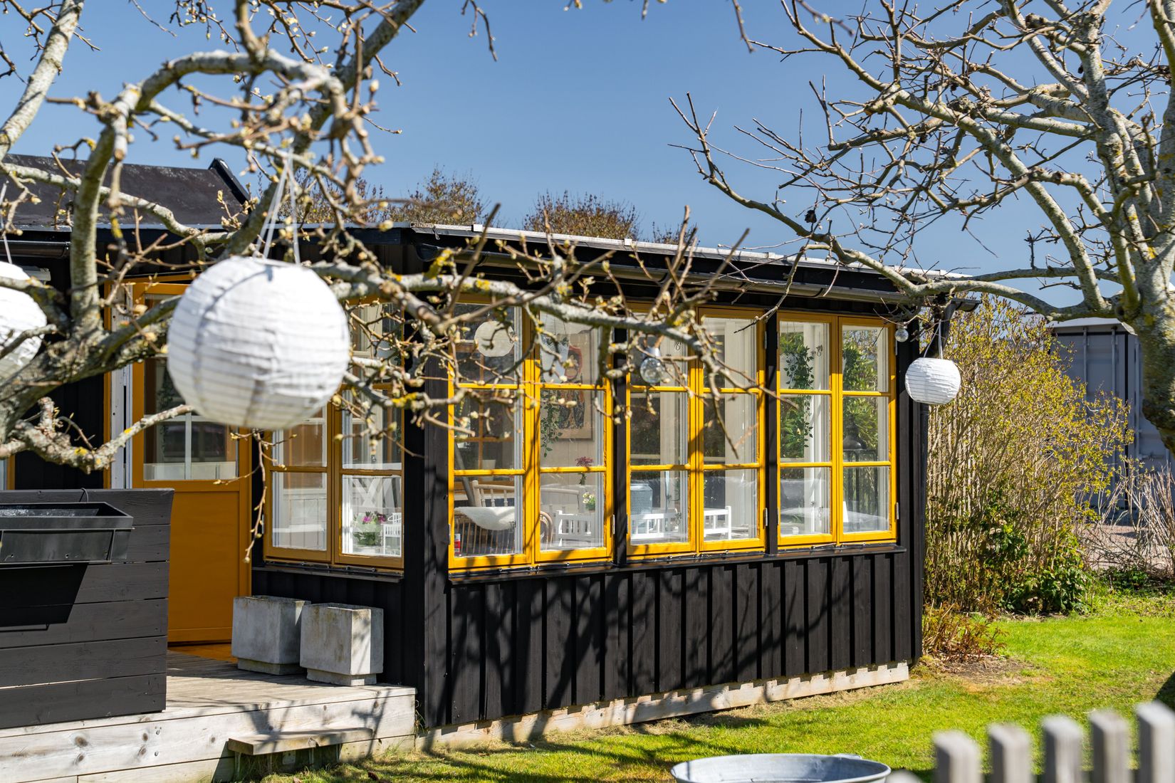 Invändigt välkomnas du först av ett inglasat uterum – en perfekt plats att förlänga säsongen och njuta av både tidiga vårdagar och sena sommarkvällar. Härifrån kliver du vidare in i själva stugan där kök och vardagsrum ligger i en öppen och social planlösning och öppet upp till nock med framtagna takbjälkar. Ytorna är ljusa, ombonade och hemtrevliga med plats för både matlagning och umgänge. I stugan finns även en praktisk toalett. Vidare erbjuds ett separat rum med en mysig sovalkov – en rofylld plats att dra sig tillbaka till efter dagens alla stunder i trädgården.
