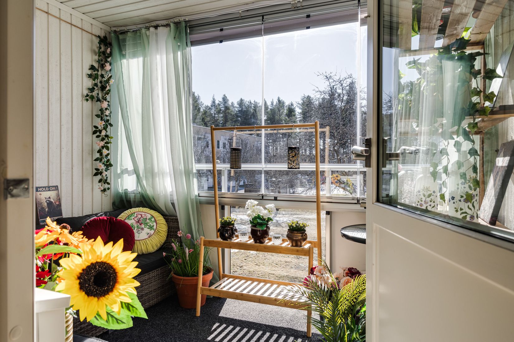 Invändigt möts ni av en rymlig och praktisk hall med goda förvaringsmöjligheter i form av en garderob med skjutdörrar. Vidare in finner ni det väl tilltagna vardagsrummet som rymmer både soffgrupp och matplats. Vardagsrummet har ett stort fönsterparti som släpper in naturligt ljus och erbjuder en trevlig vy över skogspartiet.
