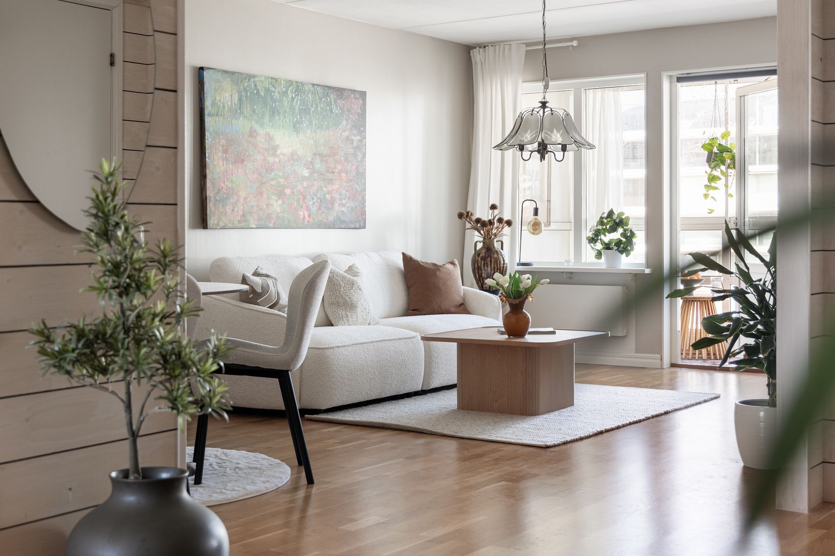 Välkommen till en ljus och inbjudande lägenhet där den öppna planlösningen skapar en härlig rymd och får bostaden att upplevas större än sina kvadratmeter.
