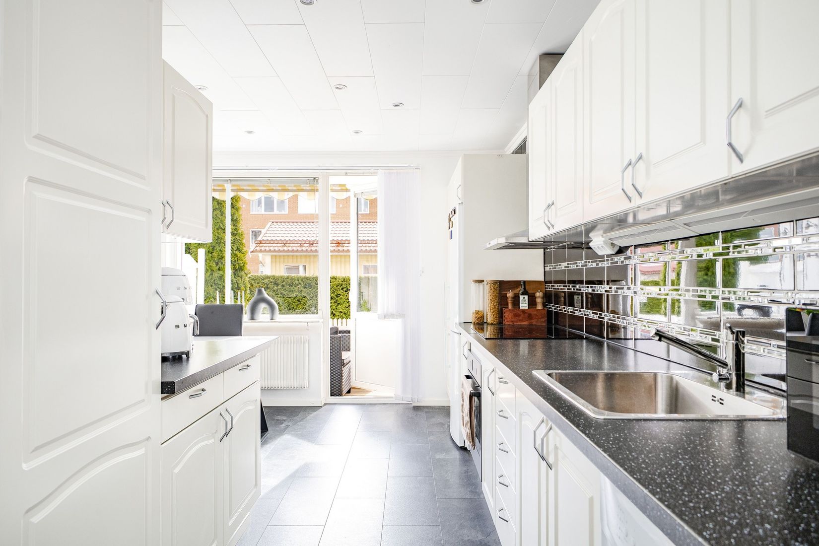 Med utgång från köket finner du uteplatsen med en altan under tak. Uteplatsen är med utsikt mot lekparken och ger en villa-känsla som kommer med lyxen att gå ut på en altan och ta en kopp kaffe eller bara avnjuta varma sommardagar på.