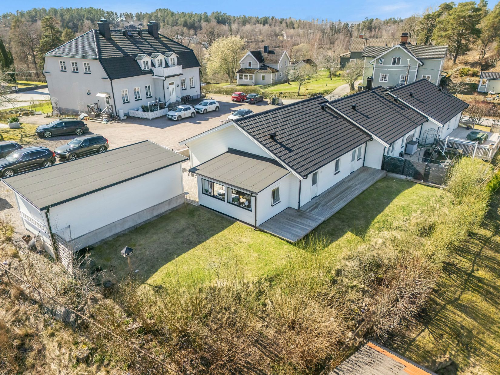 Från ett av sovrummen finns dessutom direkt utgång till baksidan, en liten detalj som gör stor skillnad!
