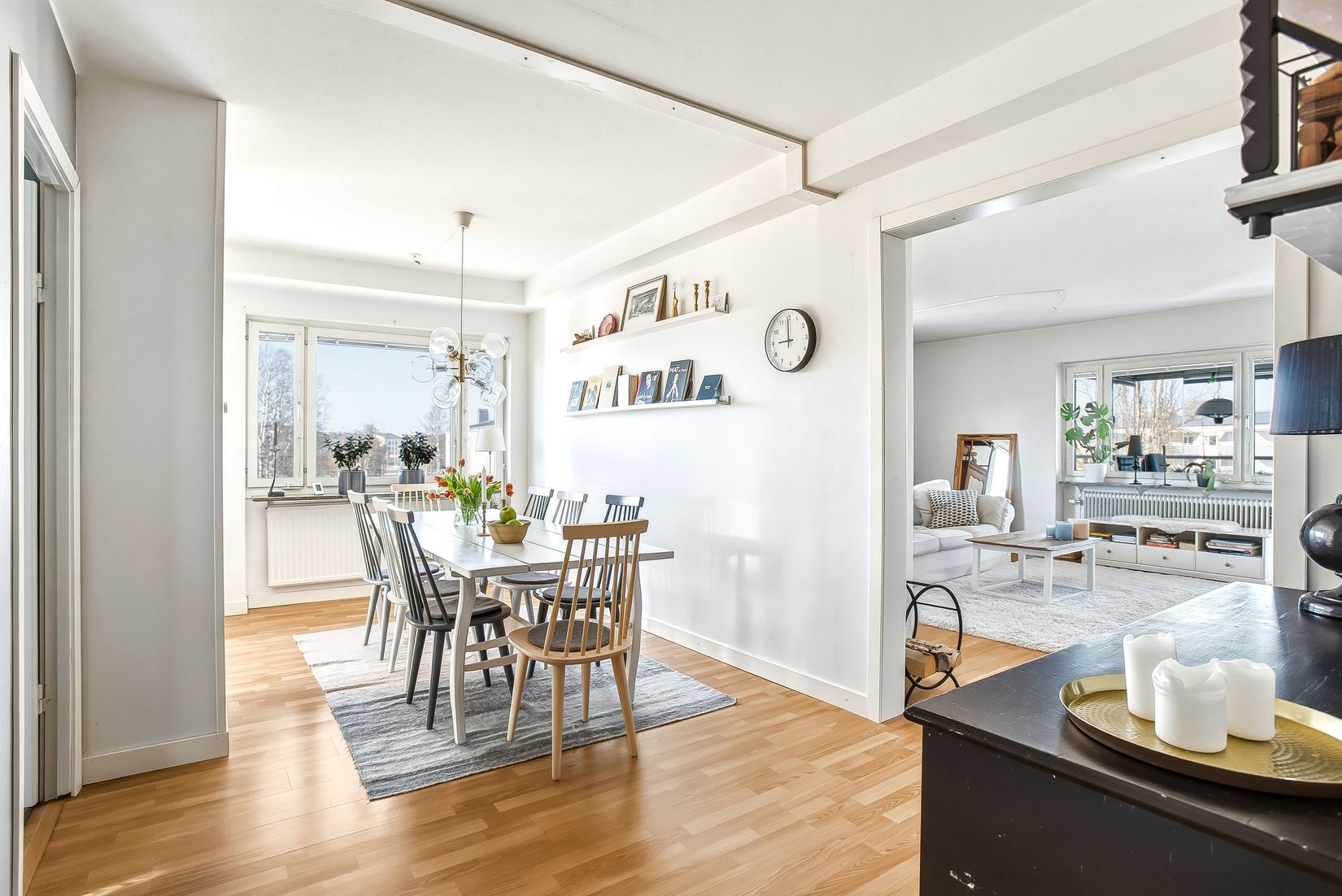 Läget är lugnt och trivsamt med närhet till grönområden, service, skolor och goda kommunikationer – ett perfekt boende för både familjen och den som söker ett rymligt hem i ett attraktivt område.