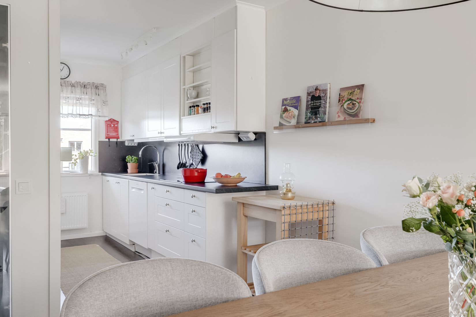 Bostaden ligger en trappa upp och nås via en trivsam loftgång som ger en luftig känsla. Inne i lägenheten möts du av en ljus hall med goda förvaringsmöjligheter som sätter tonen för resten av hemmet. Köket är stilrent och funktionellt med generösa arbetsytor och en naturlig matplats i öppen anslutning – en social yta som bjuder in till umgänge.