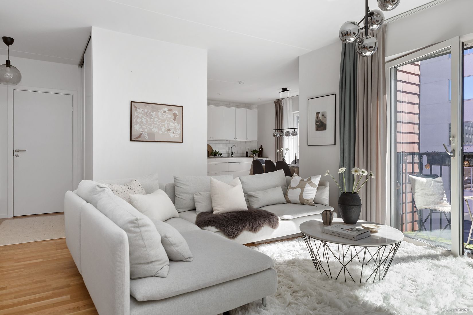Nu finns chansen att förvärva föreningens kanske bästa tvåa med en takhöjd om 2,6m. Här får ni hela 64 kvm istället för många av de andra som är mindre. Unikt för denna lägenhet är också planlösningen, här får ni en förskjutning mellan kök och vardagsrum vilket gör att ni slipper hitta en lösning för att dela av emellan som de flesta andra ägarna av tvåor står inför. Detta medför att ni får ett väldigt rymligt kök med plats för ett stort matbord med upp till 8 personer. Det trevliga och rymliga köket levererades av Marbodal och vitvaror, perfekt för er som gillar att laga mat. Ett separat rymligt vardagsrum med plats för soffa och TV och utgång till balkong. Balkongen är trevlig och ger er trevlig vy ut mot hamnen och vattnet med mycket sol tack vare dess sydost läge. Sovrummet ligger trevligt längst in i bostaden, här är plats för dubbelsäng och förvaringen löser ni i skjutdörrsgarderober med fin inredning som gör förvaringen enkel. Det helkaklade badrummet ligger vid entrén, här är det stort med dusch, wc handfat och separat del med tvättmaskin och torktumlare.