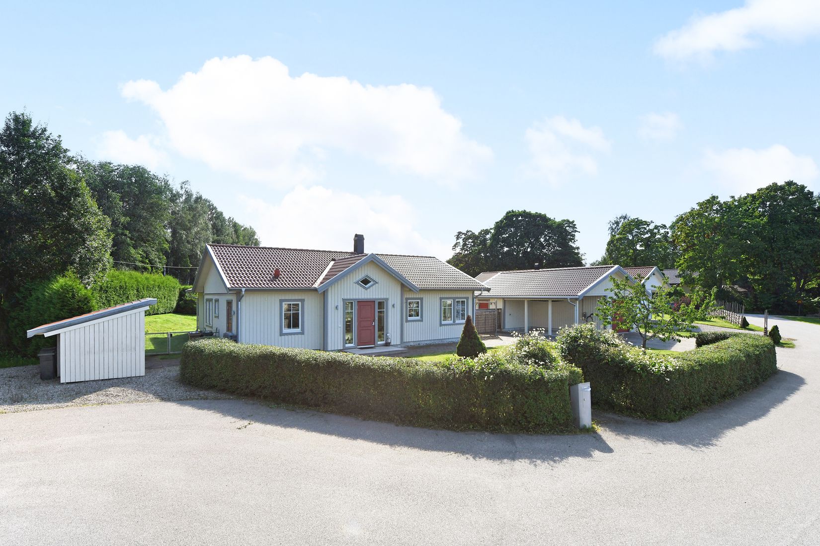 Utöver huvudbyggnaden finns ett varmbonat gästhus med tillhörande walk-in closet – perfekt för övernattande gäster, tonårsbarn eller som en privat arbetsplats. Fastigheten erbjuder även ett garage med el-port samt elbilsladdare, carport samt intilliggande förråd, vilket ger gott om plats för både fordon och förvaring.