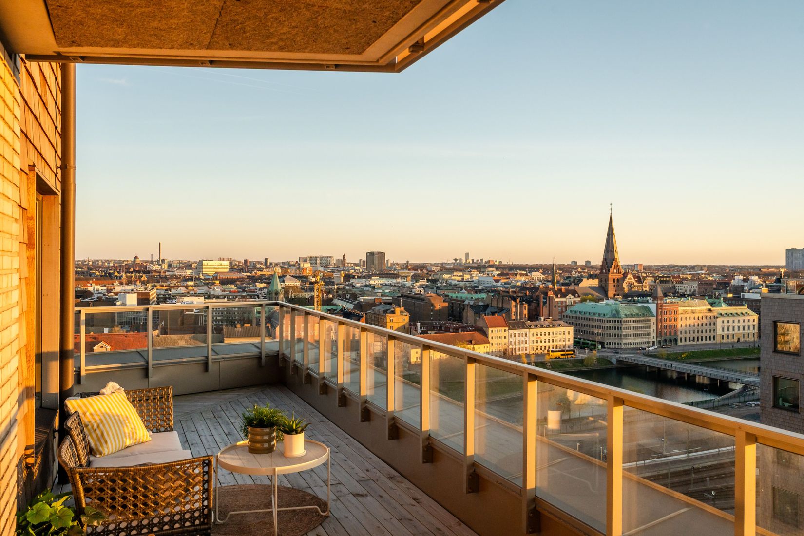 Från bostaden nås den stora terrassen om hela 55 kvm som sträcker sig längs med lägenheten på syd/väst sidan. Här finns gott om plats för både matgrupp, loungemöbler och sociala tillställningar en perfekt förlängning av bostadens sällskapsytor under årets varmare månader.