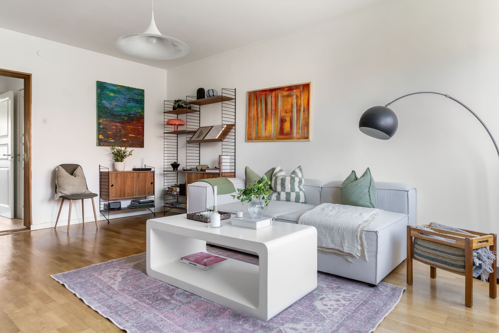 Bostaden har en genomtänkt planlösning där varje kvadratmeter tas till vara på bästa sätt. Köket är ljust och fräscht med gott om både förvaring och generösa arbetsytor, en perfekt plats för såväl vardagsmatlagning som trevliga middagar. Vardagsrummet är rymligt och lättmöblerat med fint ljusinsläpp och utgång till en mysig balkong i söderläge som blir en naturlig förlängning av hemmet under årets varmare månader.