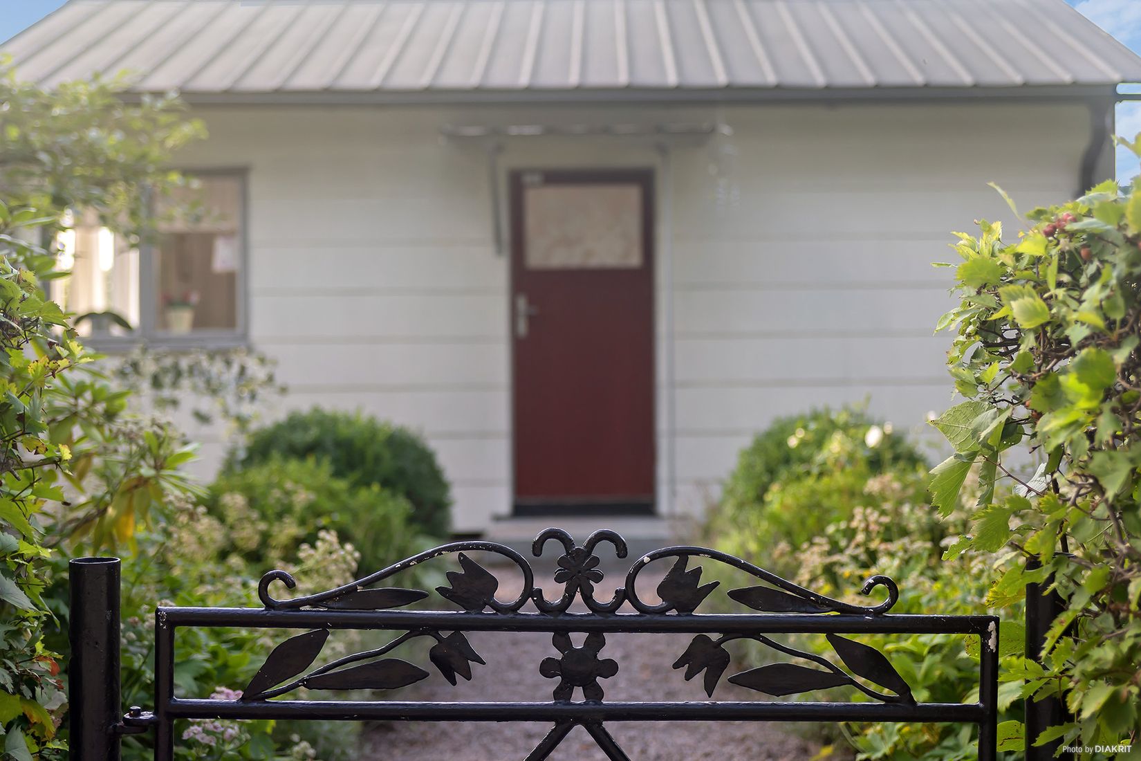 Härlig trädgård med en lättskött plan gräsmatta och här finns bärbuskar och fruktträd. Ingång till tomten via en vacker smidesgrind som sedan genom en grusad gång kantad av en vacker blomsterallé leder fram till stugan. Trädgården har sol hel dagen till kvällen vilket ger ett gott resultat för den odlingsintresserade därav har det placerats ut flertalet pallkragar och ett växthus -en dröm för den som älskar att plantera och odla! På tomten finns en stor förrådsbod med plats för allehanda trädgårdsredskap.