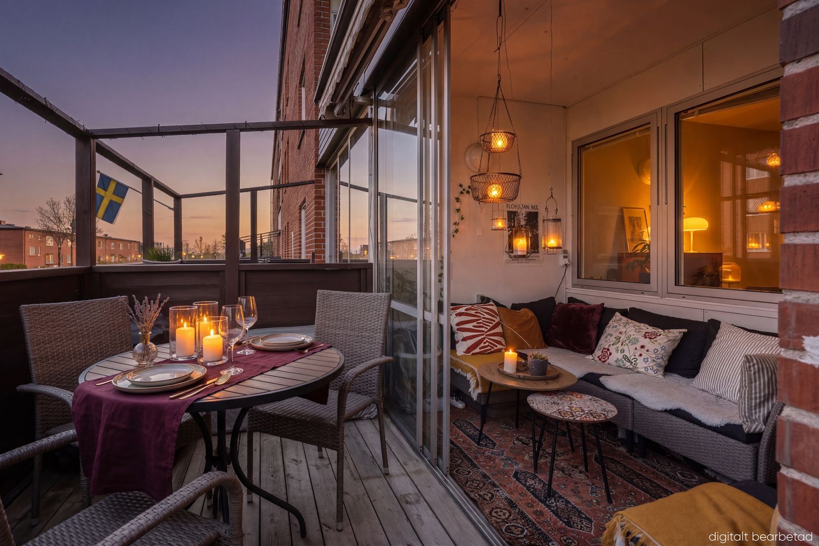 Bostaden erbjuder generösa sällskapsytor, tre bra sovrum, två badrum samt ett praktiskt grovkök som förenklar vardagen. Den inglasade uteplatsen blir snabbt en favoritplats – perfekt för avkoppling året runt – och tillsammans med ytterligare uteyta får du en härlig känsla av husliv.
