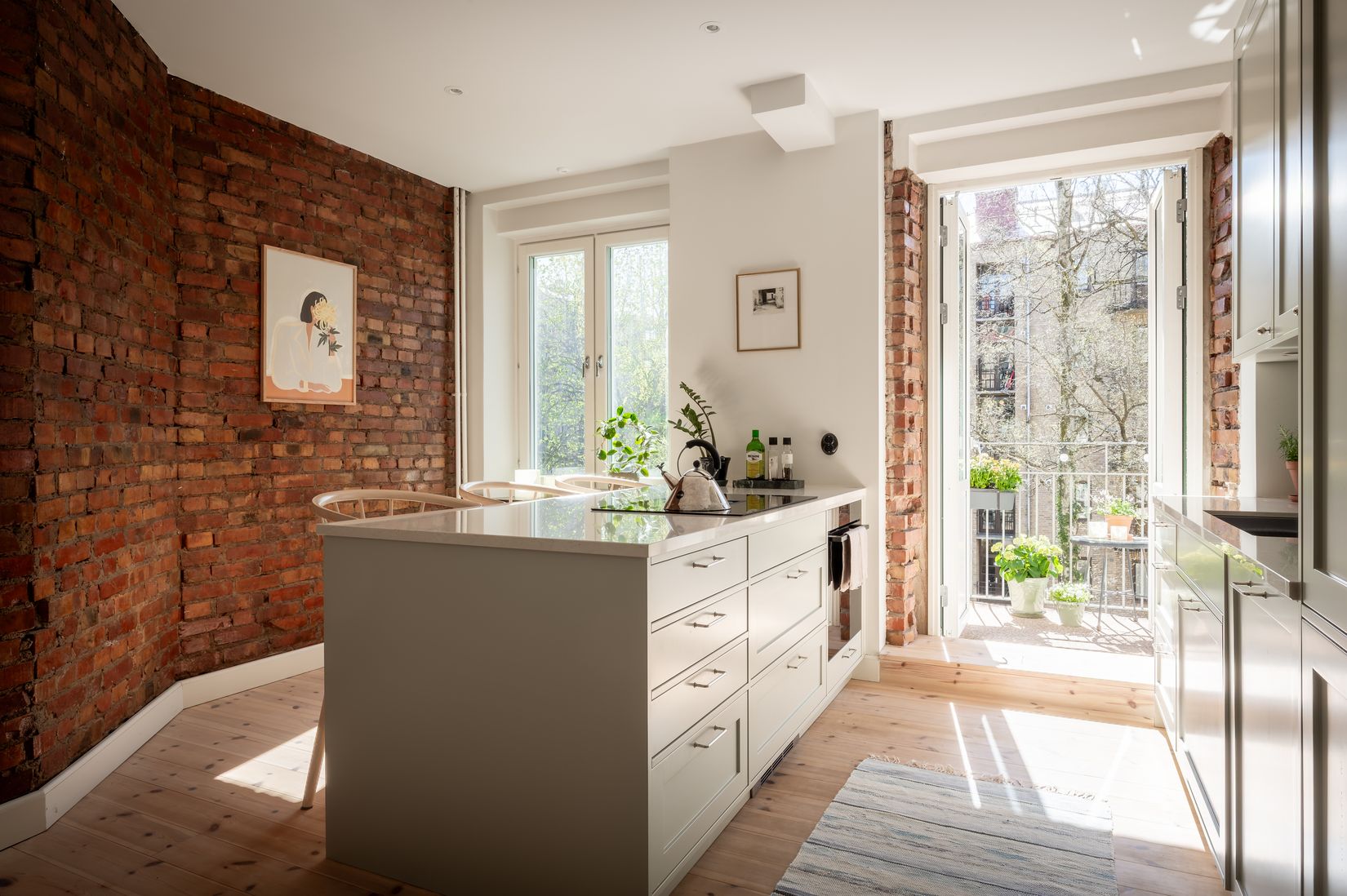 Lägenheten erbjuder två entréer med nyinsatta säkerhetsdörrar, vilket ger både flexibilitet och trygghet. Vardagsrummet är mycket rymligt i generös yta. Här finns två sovrum och två WC varav ett fullutrustat badrum samt en separat WC med tvättmaskin. Köket topprenoverades 2023 i en riktigt fin stil och är både rymligt och otroligt smakfullt. Från köket nås den generösa balkongen i söderläge med utsikt över en grönskande innergård och vackra omgivande hus.