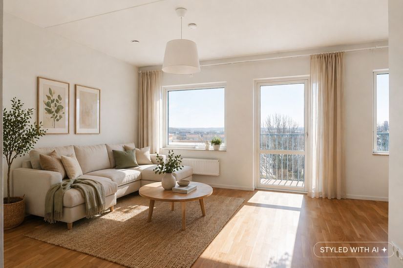 Ett bekvämt och harmoniskt boende med närhet till både stad och natur, och den extra fördelen av två balkonger.