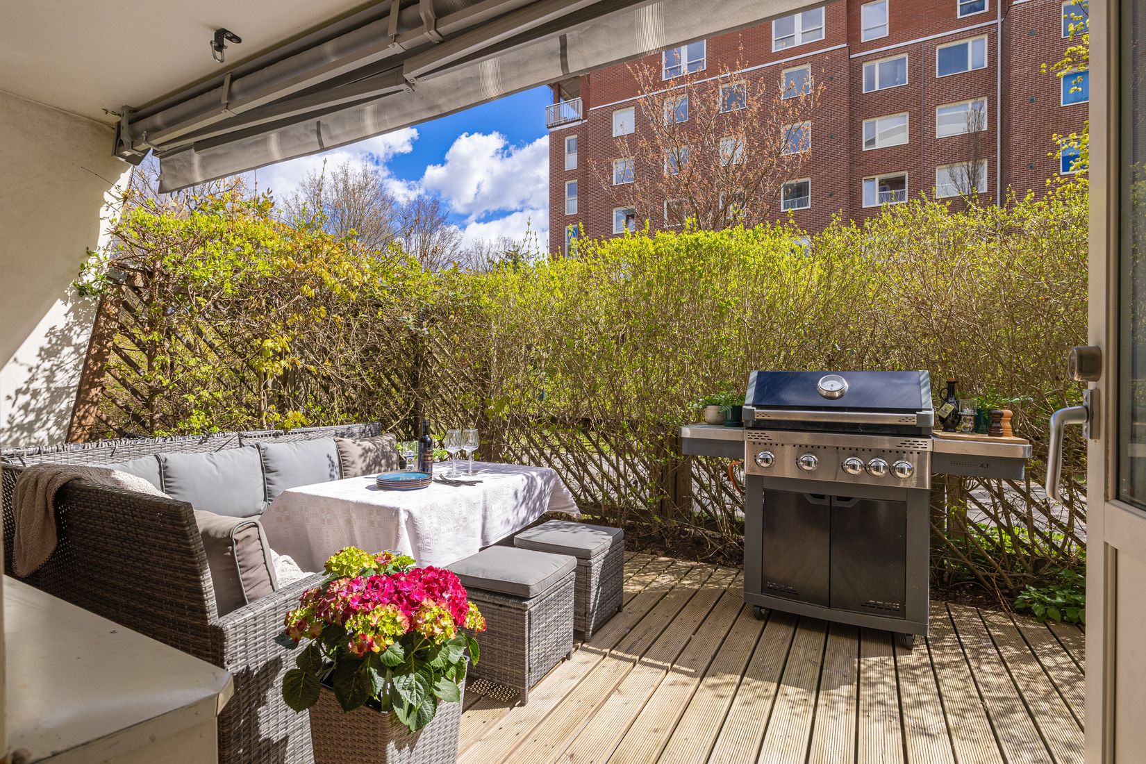 Välkommen till en välplanerad och stilfull bostad med egen uteplats och ett svårslaget läge nära tunnelbanan. Redan i hallen märks den genomgående röda tråden med ljusa, harmoniska ytor och smart förvaring. Det stambytta badrummet håller hög standard med moderna materialval och en rymlig duschhörna. Köket är trivsamt och funktionellt med goda arbetsytor och plats för ett mindre matbord, medan vardagsrummet erbjuder generösa, luftiga ytor som rymmer större möblemang och bjuder in till både umgänge och avkoppling.