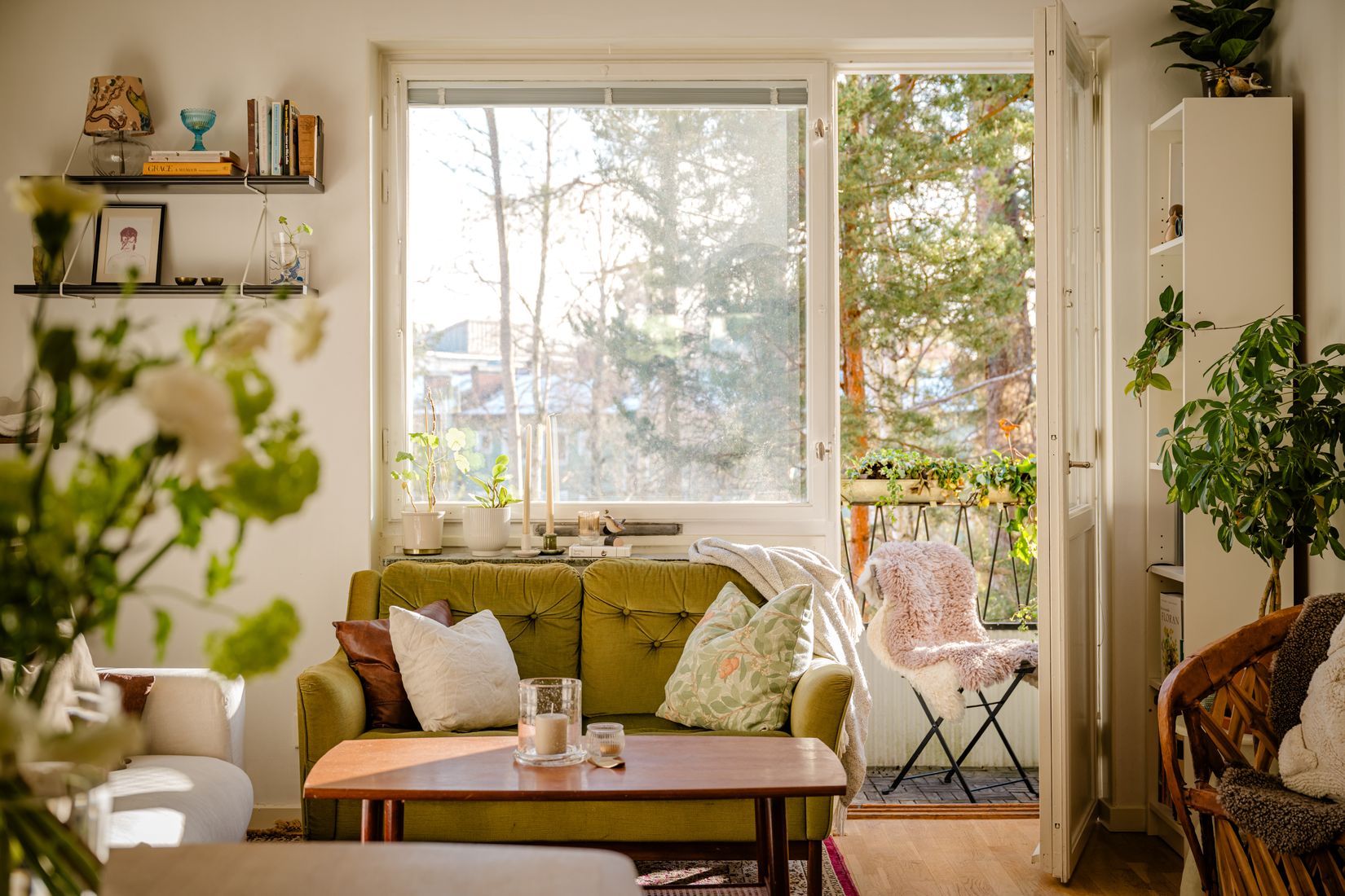Välkommen till ett hem där funkis möter värme och personlighet i en fin balans. Här bor du i en bostad med genomtänkta färgval, vackra material och en tydlig röd tråd som skapar en harmonisk helhet.