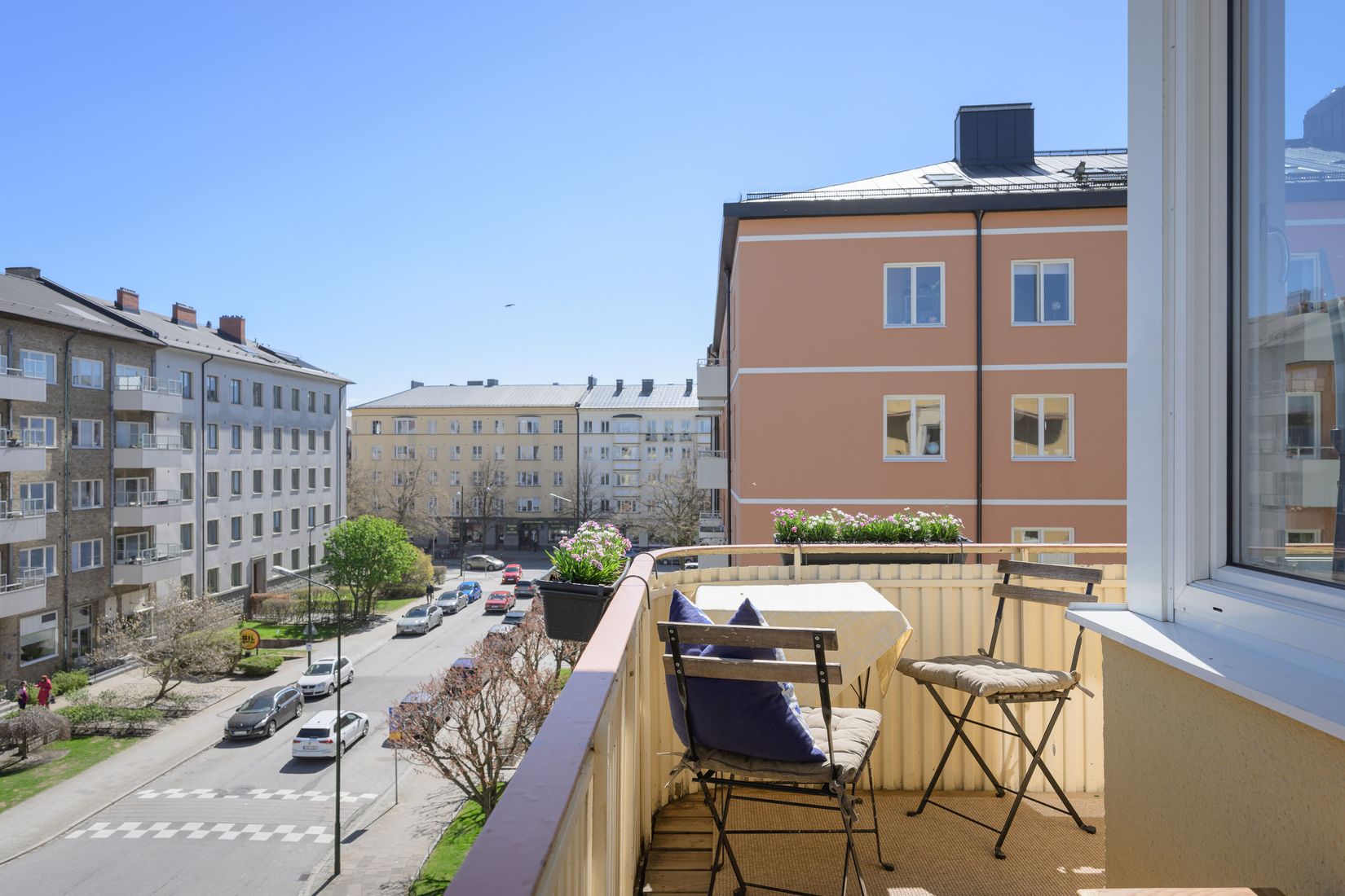 Det rymliga vardagsrummet erbjuder en inbjudande atmosfär med direkt access till balkongen i soligt sydostläge, där en mysig utsikt kan avnjutas. Köket är renoverat i modern stil med exklusiv känsla, och tillsammans med det stilfullt uppdaterade badrummet skapas ett hem som är redo att flytta in i. Bostaden erbjuder även egna tvättmöjligheter, goda förvaringslösningar samt en praktisk klädkammare.