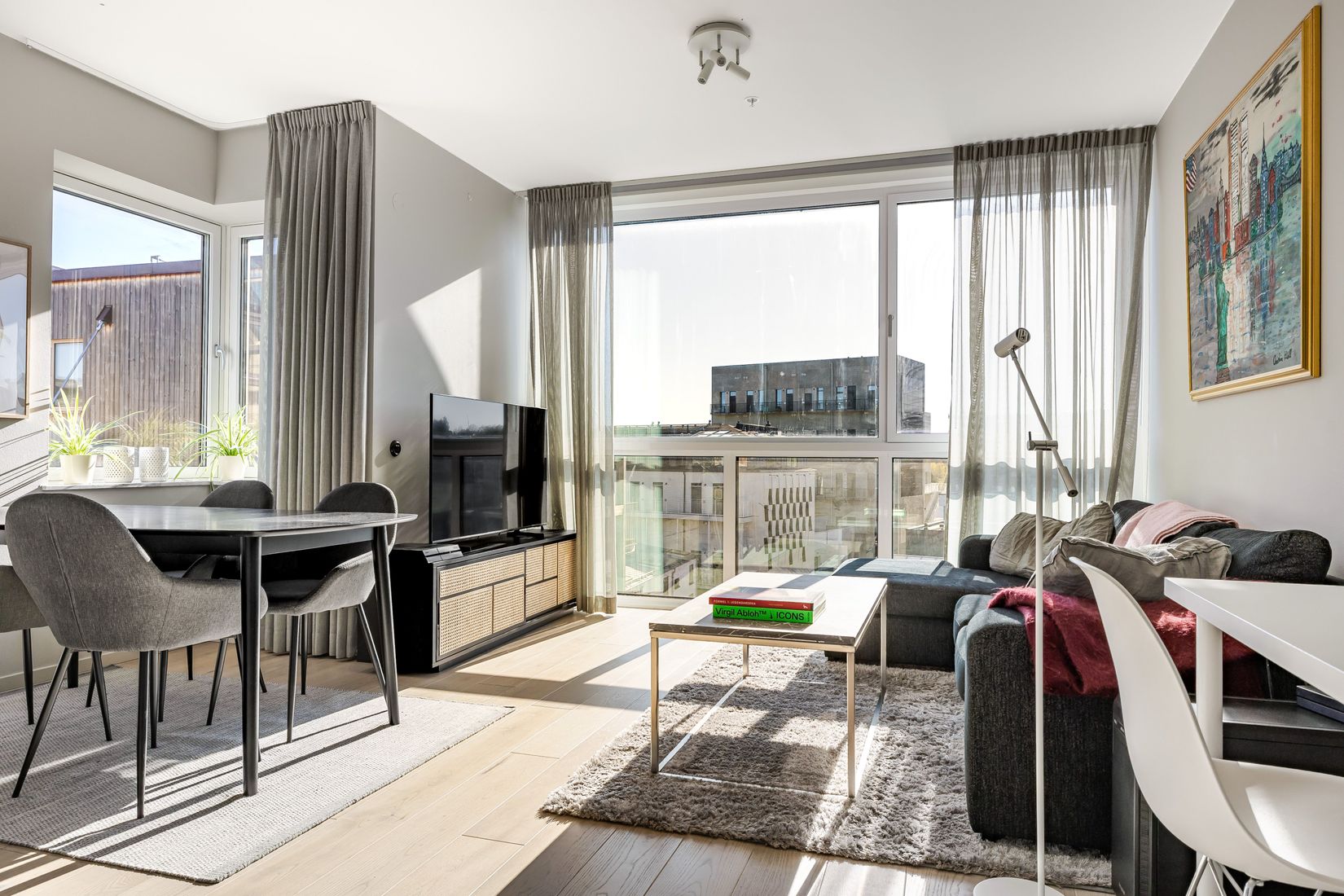 På våning fyra erbjuds 48 välplanerade kvadratmeter med en öppen och social planlösning där varje detalj är noga utvald. Bostaden präglas av stora fönsterpartier som skapar ett härligt ljusflöde, exklusiv carraramarmor, stilrena detaljer och vacker enstavsparkett i ask som tillsammans skapar en elegant och harmonisk helhet.