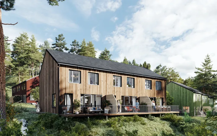 På den nyare övervåningen finner du fyra ljusa sovrum, ett badrum samt en möblerbar hall/allrum. Flera av rummen har vackra trägolv, synliga bjälkar och detaljer som ger huset karaktär.