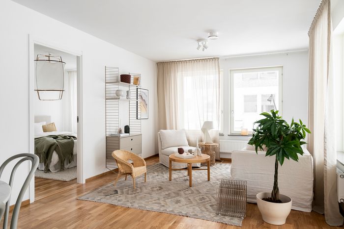 Högst upp i huset på Sturegatan 54 väntar denna ljusa och välplanerade trerummare om 75 kvm – ett hem där utsikten spelar huvudrollen. Här bor du helt utan insyn och med en vidsträckt vy över Huskvarna, Vättern och de grönskande omgivningarna. Från balkongen i västerläge njuter du av många soltimmar och vackra solnedgångar som sätter en särskild prägel på vardagen. Bostadens hjärta är det generösa allrummet där stora fönster släpper in rikligt med ljus och förstärker känslan av rymd. Här finns gott om plats för både en större soffgrupp och ett matbord för trevliga middagar och sociala tillställningar. Från allrummet kliver du ut på balkongen där utsikten över Huskvarna och Vättern breder ut sig – en plats att koppla av på och njuta av omgivningarna. Köket är stilrent i vitt och i gott skick med bra arbetsytor och utrustat med kombinerad kyl och frys, diskmaskin samt spis – ett praktiskt och funktionellt kök som passar både vardag och helg. Bostaden erbjuder två sovrum i bra storlek. Det ena sovrummet har dessutom direkt utgång till lägenhetens andra balkong, vilket ger ett extra ljusinsläpp och en härlig känsla av rymd. Att ha två balkonger ger möjlighet att följa solen under dagen och skapa flera trivsamma uteplatser. Badrummet är utrustat med kaklade väggar och klinkergolv samt dusch och wc. Här finns även möjlighet att installera tvättmaskin för den som önskar. Brf Plåtslagaren 2 är en välskött och familjär förening med byggår 1956. Föreningen består av 10 lägenheter samt en lokal som hyrs ut, vilket bidrar till en stabil ekonomi. Belåningsgraden är låg, cirka 2 845 kr per kvm, och månadsavgiften om 3 395 kr inkluderar vatten, värme samt bostadsrättstillägg. Som medlem har du tillgång till gemensamma utrymmen såsom tvättstuga, torkrum, cykelrum och en grönskande trädgård att nyttja under sommarhalvåret. Till lägenheten hör även två förråd som ger goda förvaringsmöjligheter. På Västerliden i Huskvarna bor du i ett lugnt och trivsamt område med närhet till både natur och stadens bekvämligheter. Här har du gångavstånd till Huskvarna station med goda kommunikationer till Jönköping city och andra destinationer. I närområdet finns även service för vardagen såsom konditori, pizzeria och minilivs runt hörnet. Samtidigt har du närhet till Vättern och fina promenadstråk som bjuder på natursköna miljöer året om. Här erbjuds ett hem där ljus, utsikt och två balkonger skapar en boendemiljö utöver det vanliga – högst upp i huset i en stabil och välskött förening. Förbered dig gärna genom att: - Åka förbi området, bekanta dig och läsa på om objektet. - Låta oss hjälpa dig att ordna ett objektspecifikt lånelöfte genom någon av våra samarbetspartners. Vi har lokala/oberoende samarbeten med alla banker. - Äger du ditt nuvarande boende? Boka in en kostnadsfri värdering av din bostad redan idag för att skapa en trygg process